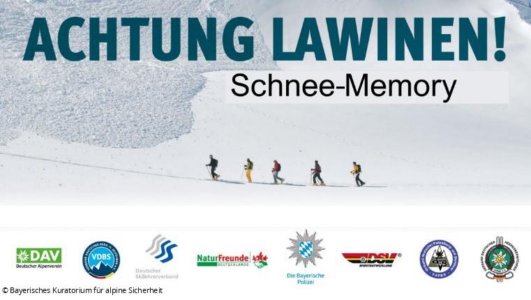 Die Unfallzahlen in den bayerischen Bergen durch Unfallforschung und Prävention zu reduzieren, ist das Ziel des Bayerischen Kuratoriums für alpine Sicherheit. Das Netzwerk alpiner Fachverbände, dem auch die NaturFreunde Deutschlands angehören, veröffentlichte im Oktober 2021 das Faltblatt „Achtung Lawinen“. Darauf aufbauend ergänzt nun ein weiteres Ausbildungstool, das Schnee-Memory, die Lehrmaterialien zum Thema Lawinenkunde.