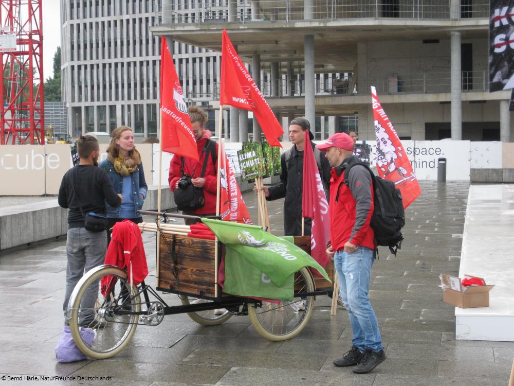 Ein NaturFreunde-Transparent, hinter dem sich zahlreiche Demonstranten versammelten, forderte das Abschalten der Kohlekraftwerke. Gemeinsam mit der Naturfreundejugend hatten die NaturFreunde zudem Schilder mit der Botschaft "Klimaschutz statt Kohleschmutz" verteilt und an ihrem Infostand über NaturFreunde-Positionen zum Kohleausstieg informiert. Uwe Hiksch aus dem NaturFreunde-Bundesvorstand hatte die Demonstration für das "Stop-Kohle!"-Bündnis angemeldet.